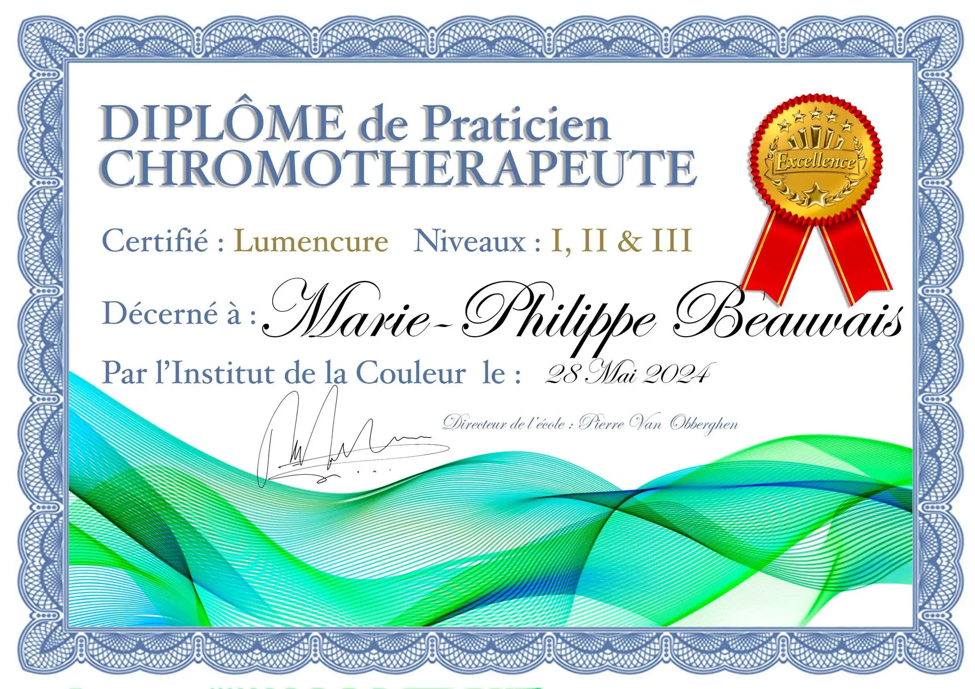je deviens la première Chromothérapeute Lumencure du Québec.